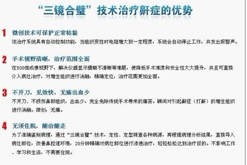 RC-FUT技术利用纤维喉镜、鼻内窥镜、手术显微镜“三镜”联合,锁定咽腔、鼻腔、舌根等形态改变部位,进行可视介入,美国杰西等离子低温消融术,在500倍成像视野下,精确定位直接锁定形态改变部位,对增生组织进行消融,恰当的温度控制及能量释放,解决软腭三个区可治疗,包括对呼吸道消炎和消肿、使颌咽成形,改变鼻腔咽腔通气状况,使打鼾患者轻松告别鼾声,快捷轻松消除病灶炎症,疏通呼吸道堵塞部位,享受舒适睡眠。 >>在线咨询请点击