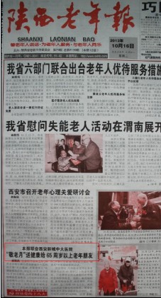 在重阳节来到之际,陕西老年报社联合县西安新城中大耳鼻喉医院将开展“关注健康,关爱老年人”的健康援助活动。决定在10月18日至10月31日期间,由级著名耳鼻喉教授来长荣(历任市耳鼻喉科主任)、张全安(历任西安医学院二西安新城中大耳鼻喉医院耳鼻咽喉科主任)等三十多位教授组成的医生团队,开展对全省65周岁以上老人“敬老月”大型健康援助活动。