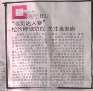 4月13日是第11届“爱鼻日”,西安西安新城中大耳鼻喉医院于4月13日、14日在北大街十字成功举办了主题为“爱鼻子、爱呼吸●领嗅西安”的公益健康教育及义诊活动,赢得了老百姓的高度评价和赞扬,并受到西安晚报、华商报、阳光报等多家媒体的关注,西安《零距离》及陕西一台同时报道了此次活动!