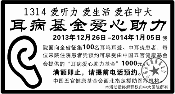 为了给广大耳鼻喉患者解忧答疑,建立精确的诊断分型及更加合理的治疗方案,帮助患者重拾健康,即日起,西安新城中大耳鼻喉医院正式面向全省征集100名耳鸣耳聋及中耳炎患者,入选者即可得到医生亲诊机会,每位来院住院患者凭预约可享受由中国五官健康基金会提供的“耳病爱心助力基金”1000元。