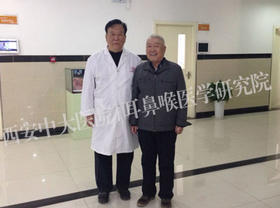 一位成功实施喉部肿瘤手术患者与西安中大来长荣主任医师合影