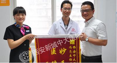 【真实案例】久治不愈耳鸣患者的衷心感谢 来自蓝田县的叶勇先生(化名),是一名长期遭受耳鸣痛苦大4年的患者,耳鸣让他的事业深深受挫。为了治耳鸣,他跑过不少的医院,钱花了一大把不说,效果却一直不见起色,这让他痛苦不已。2013年6月中旬,他通过合作伙伴的推荐来到西安新城中大耳鼻喉医院,了解到医院采用独特创新的中西治疗耳鸣耳聋治疗上专业高效,抱着仅有的一线希望他来到西安新城中大治疗。经过副主任医师冯亮教授采用中西治疗耳鸣耳聋精心治疗,仅一个疗程,他的耳鸣就得到好转,并且基本消除。带着无比的感激之情,2013年7月11日,他送来锦旗,表达对冯亮教授和医院的感激之情。..