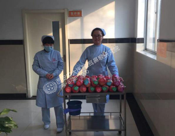 一个苹果,一点心意,一份祝福,12月24日西安新城中大耳鼻喉医院开始了一个不平凡的平安夜旅程: