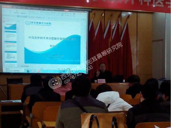 研讨会天,主要由西安新城中大耳鼻喉医院耳鼻喉医学耳科学科带头人张全安教授讲述:中耳炎外科手术分型新方案的临床研究、中耳炎精确诊断,精准治疗的诊治理念、胆脂瘤型中耳炎形成机理的较终揭秘、外耳道胆脂瘤并发症的理论与临床研究和诊治性鼔窦插管术的临床研究和应用等耳病临床诊疗新技术讲解。来自省内外的医生学者紧紧围绕会议的内容和主题进行了认真学习和热烈讨论,各位代表踊跃发言,学术气氛浓厚。