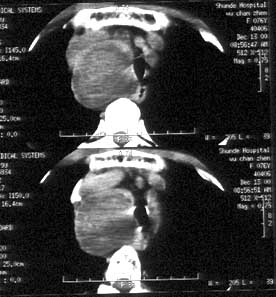 3、肿瘤很大,出现了压迫、声音嘶哑、吞咽困难,甚至有的肿瘤明显影响到了呼吸。