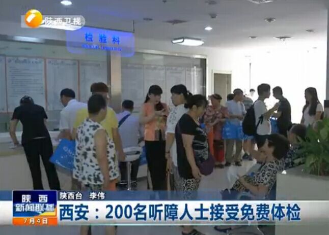 由省残联、省聋人协会、西安新城中大耳鼻喉医院联合举办的万名听障人士免费体检活动今天在西安启动,活动现场200多名听障人士接受了常规项目的体检。随后,每天将有50名听障人士进行免费体检。医院还将根据检查结果对听障人士制定健康档案,制定个性化的治疗方案。据统计,我省目前有听障人士83万人。