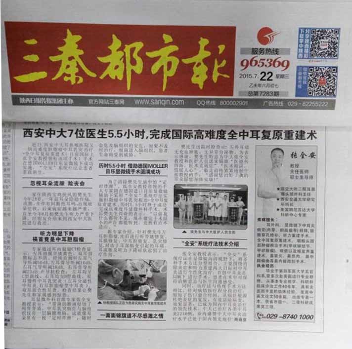 三秦都市报:7位医生5.5小时,西安中大完成 高难度全中耳复原重建术