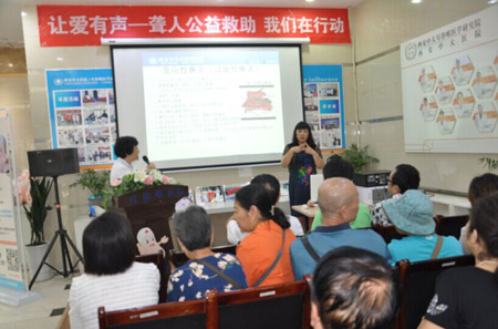 为切实履行“陕西省聋协定点体检单位”及“中大爱心会”的职责,西安新城中大耳鼻喉医院于2015年9月5日上午九点在中大医院隆重展开了“让爱有声——聋人公益救助,我们在行动”活动,此次活动是“爱的呼唤-健康听力在中大”活动的延续。陕西省聋人协会主席贾双登、西安中大医生来长荣主任医师、西安中大医护部主任朱爱民分别出席了此次活动。华商报、三秦都市报、西安晚报、陕西日报,劳动报,工人报,天地人杂志等多家权威媒体将对此进行跟踪报道。