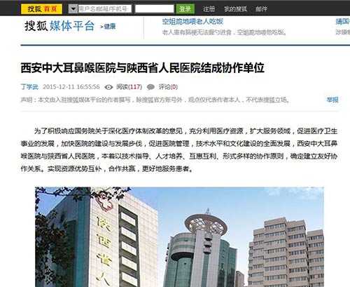 优化品牌影响力,西安新城中大耳鼻喉医院将向更高目标迈进