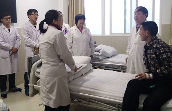 查房之初,来长荣首先向409医院住院部主任详细了解了各患者的症状和治疗现状。查房过程中,来长荣细心询问了每一位住院患者,针对特殊患者进行专科检查,提出指导性建议,并不时叮嘱患者保持良好的日常习惯,配合治疗,早日。