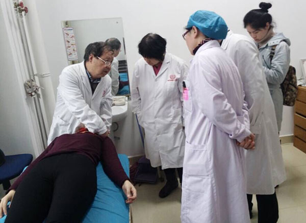 会诊过程中,来长荣接诊到一位耳石症患者,干脆亲身示范,向现场医师讲解如何通过体位耳石复位手法治疗耳石症,将治疗步骤传授给在场医师和患者本人。患者如获至宝、感激非常,表示这一趟候诊实在来的太值了。
